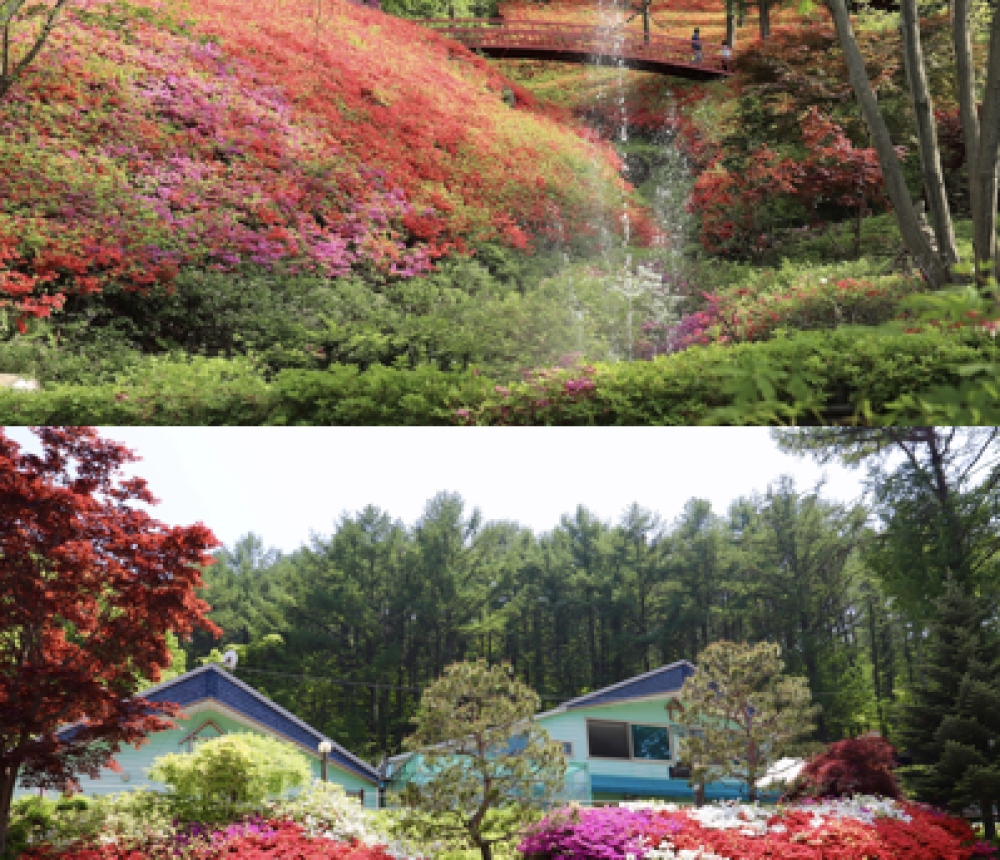 펜션 이용객은 예쁜 철죽 동산과 백년이 넘은 잣나무숲을 배경으로 조성된